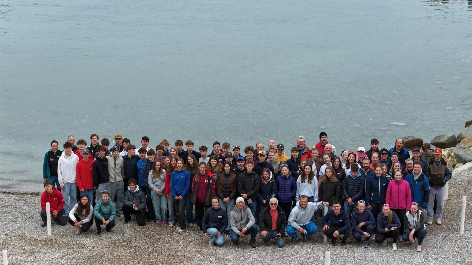 Bei diesem Event (12. – 15.2.2026) waren vier österreichische Teams unter 123 Teams vertreten, wovon zwei Teams ihre ersten Eurocuperfahrungen machten. Alle lernten in der Trainings- und Regattawoche viel dazu. Schon in der Vorbereitung zeigte sich, dass diese Regattawoche von Wind geprägt sein würde: Anhaltender Starkwind mit Böen um 30 Knoten stellte Material, Organisation und Teams auf die Probe. Was zunächst als Herausforderung begann, entwickelte sich in den ersten Tagen zu einem Wettlauf mit dem Wetter – bis am Sonntag endlich gesegelt werden konnte.