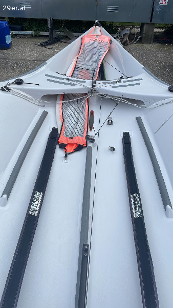 It has had the daggerboard/rudder alignment done and has new bowsprit and trapezes.